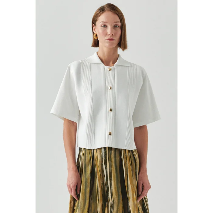 Product: Short Sleeve Knitted Garnished Poplin Regular Shirt