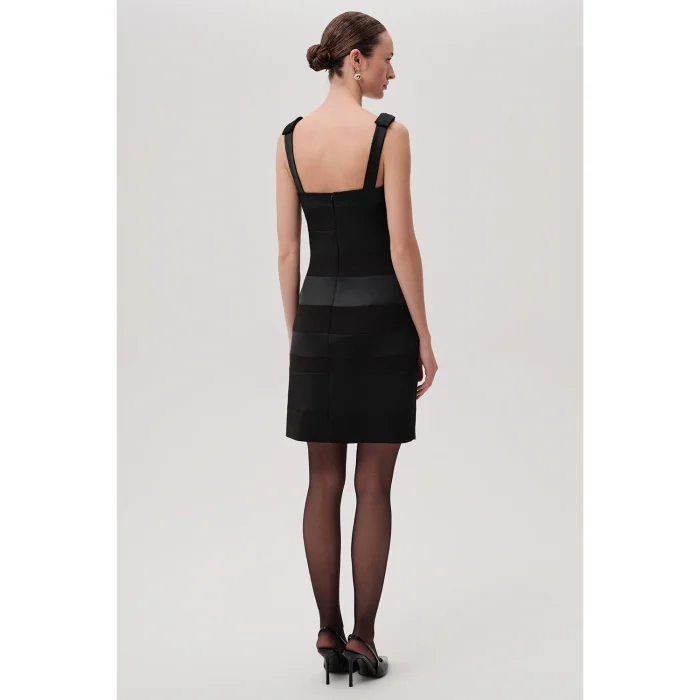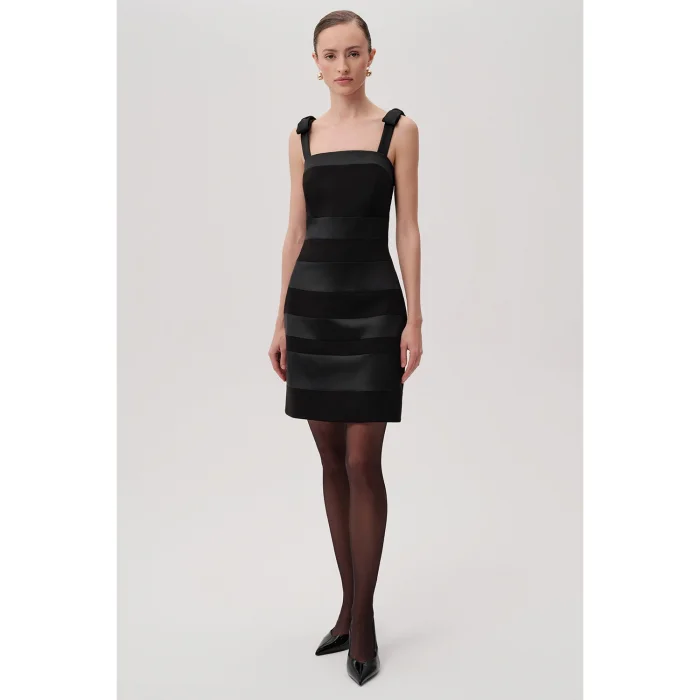 Product: Slim Fit Mini Dress With Thick Straps And Satin Trim