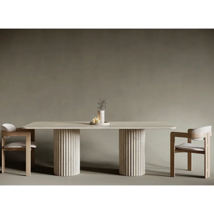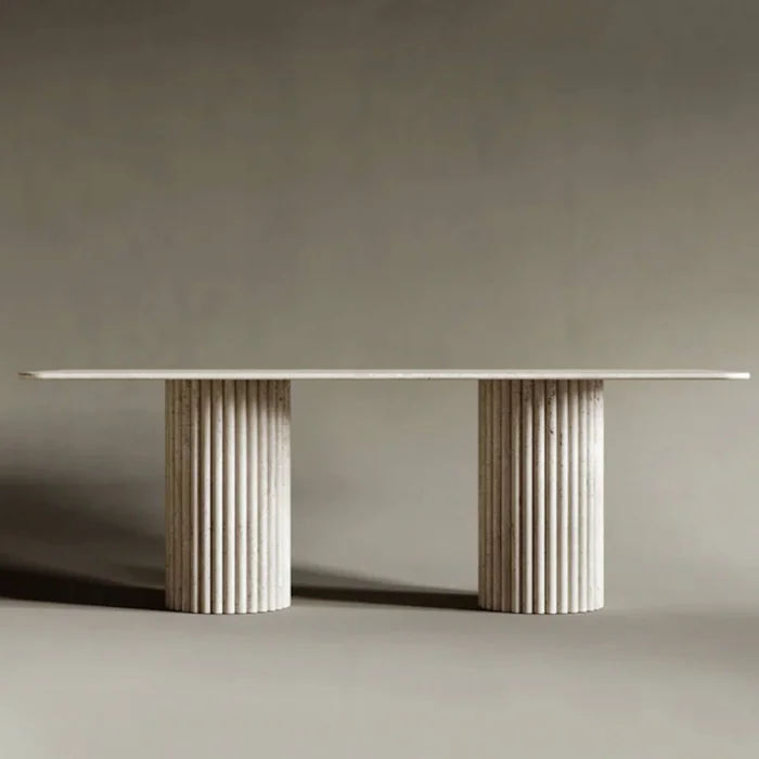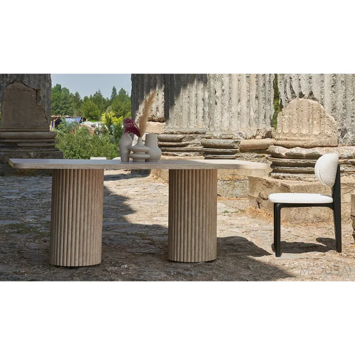 Product: Albertdikdort-traverten Mermer 2 Sütun Ayaklı Yemek Masası