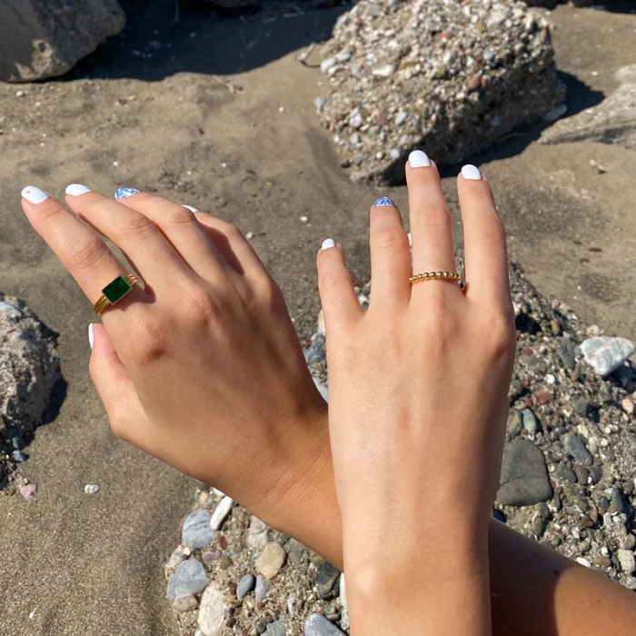 Gold filled brass handmade ring, adjustable size. It is colored with the enamel technique. Material: Brass