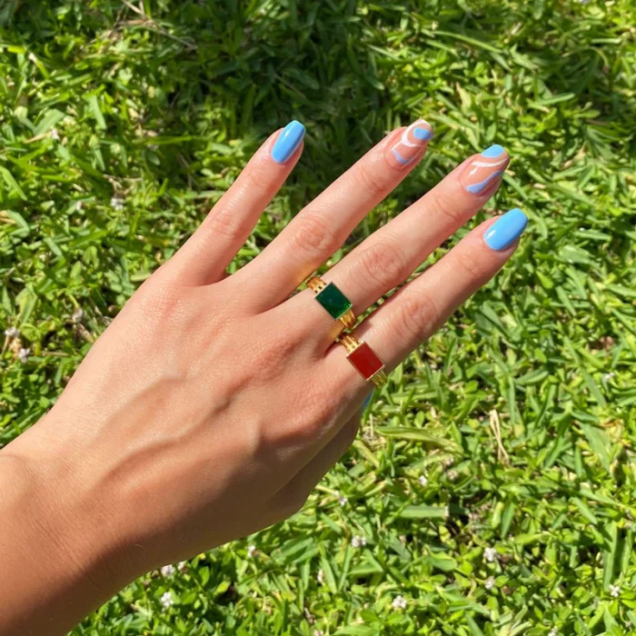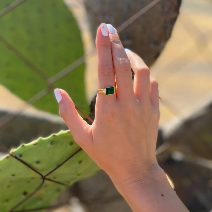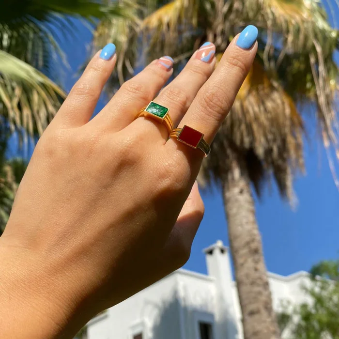 Gold filled brass handmade ring, adjustable size. It is colored with the enamel technique. Material: Brass