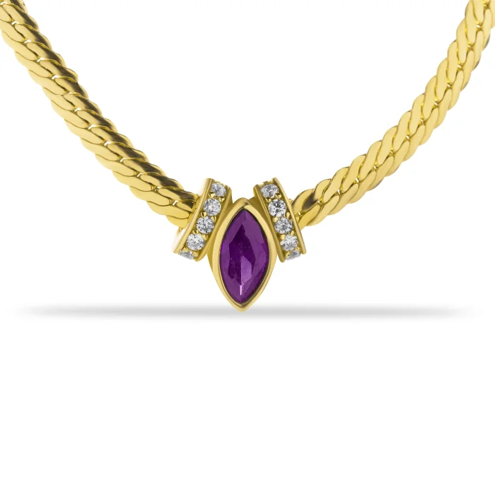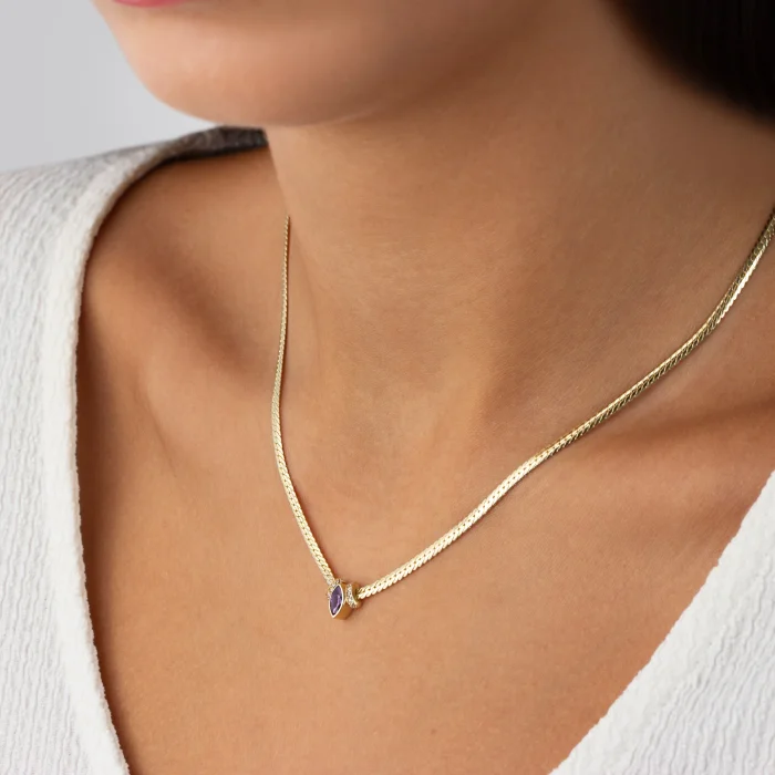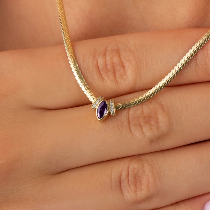 Product: 14k Gold Amethyst Stone Wicker Chain Necklace
