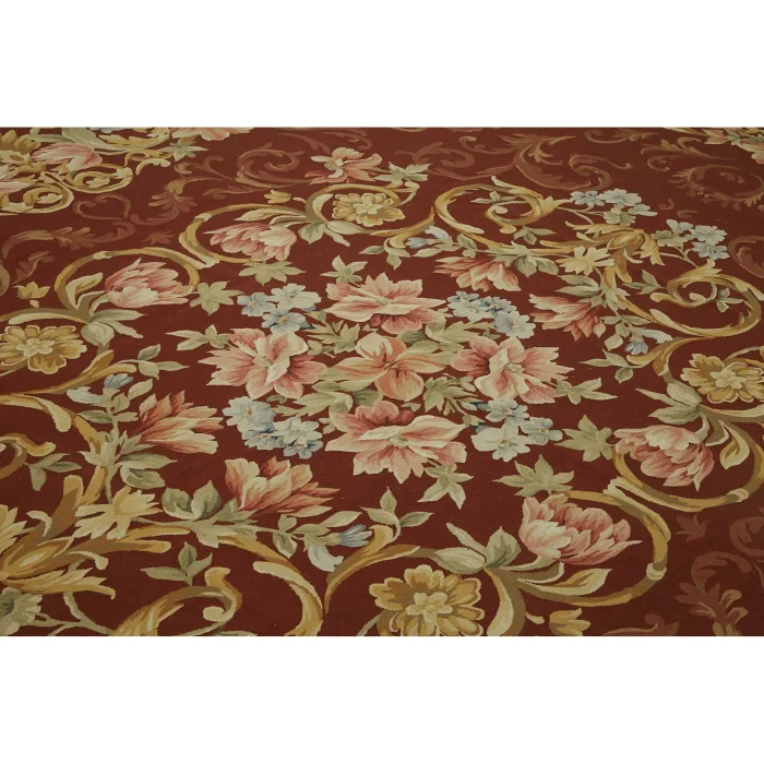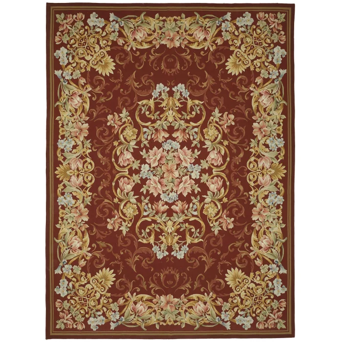 The Aubusson Rug is 302 cm wide by 410 cm long and about 5 mm thick. It weighs an average of 14 kg. It is made with hand-spun wool and cotton. It takes its colors from root dyes obtained naturally.