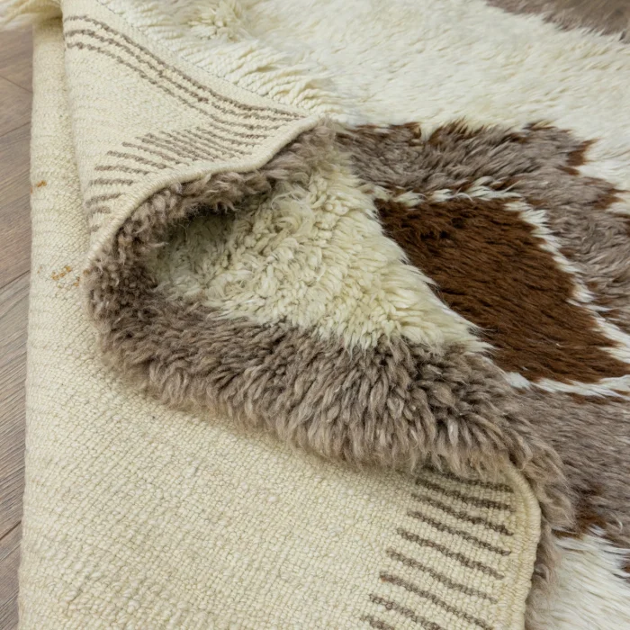 With their flamboyant and aesthetic designs, our Soho Antiq carpet models will add a new atmosphere to your living space! Our long-lasting carpet model consists of completely natural wool and mohair and is woven with a special hand weaving technique. This carpet, which we produce with the skills that make the carpet model special and ensure that it maintains its quality over the years, has a thickness of 1 to 3 cm and its length is 131 x 170 cm. The main color of the carpet you choose among the carpet models with many color options is cream. In addition, other colors found in carpet design are shades of brown and beige. Soho Antiq features carpets with cultural and traditional features. This carpet model, which has come from the past to the present, bears traces of the history of the 1970s and has cultural colors and touches, especially from the Karapınar region. It is possible to see all these traditional touches in the rustic pattern on the carpet.