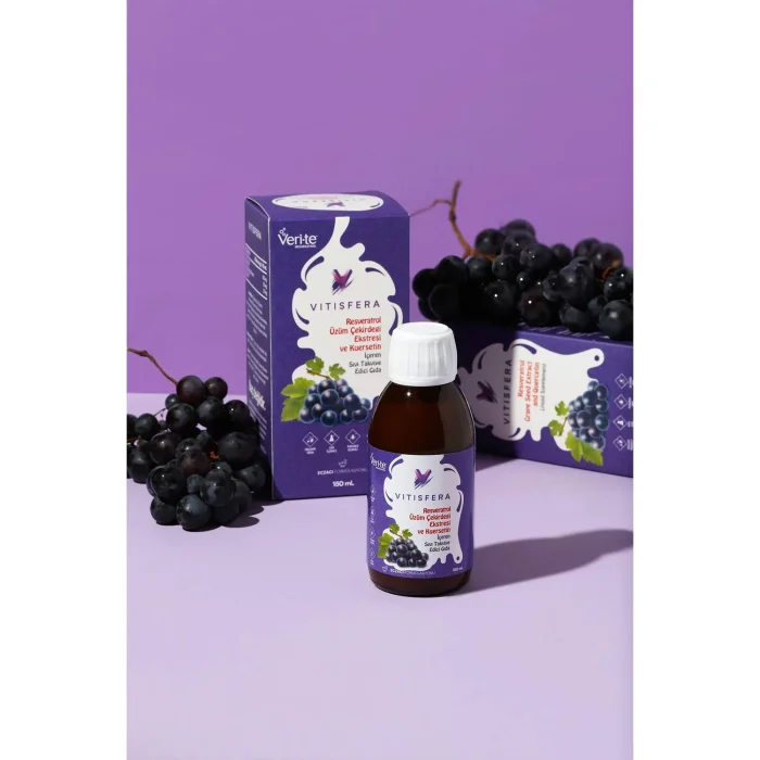 Resveratrol in the content of Vitisfera Resveratrol Shot Forest Fruits Flavored Food Supplement is obtained from Veri-Te®, Switzerland's registered and patented trans-Resveratrol brand, while Quercetin is obtained from Sophorae Japonica plant with 95% purity and Grape Seed Extract is obtained from natural grape seed with 96% purity.