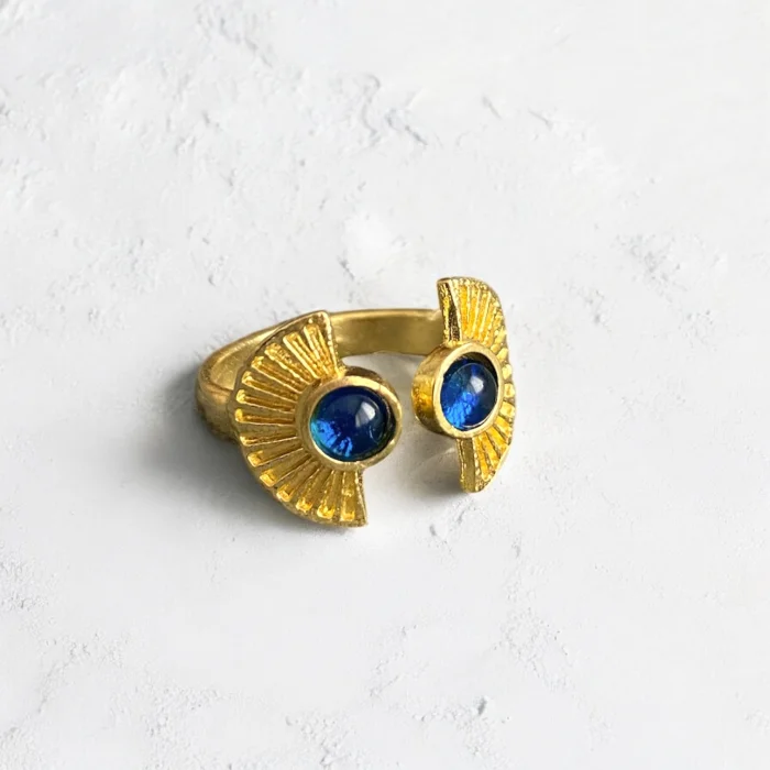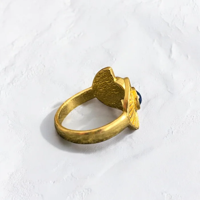 It is made of natural stone and brass. Since it is adjustable, it is compatible with all fingers. Due to the 100% natural materials, there may be slight variations in color and pattern.