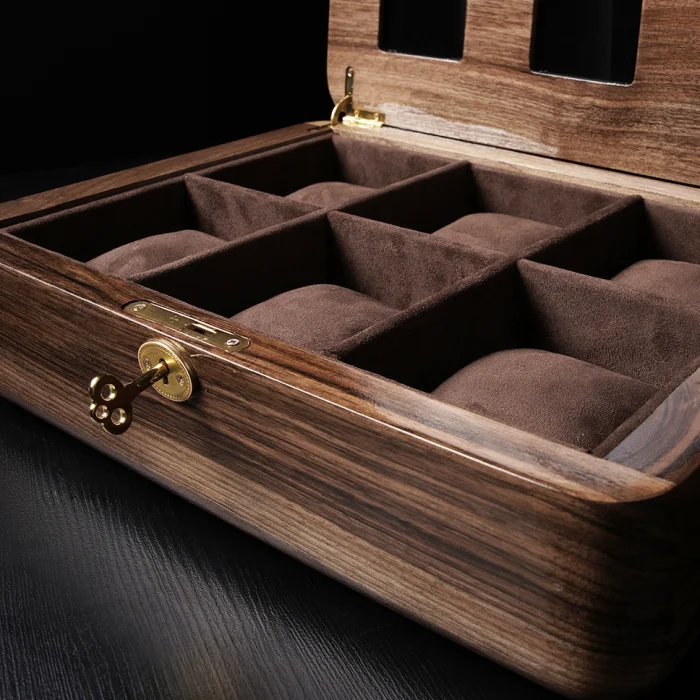 Metarial: Massive Walnut Wood, Titanium-Coated Metal, Nubuck Fabric.