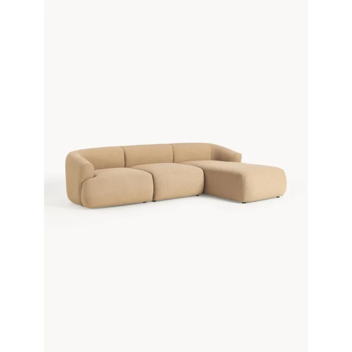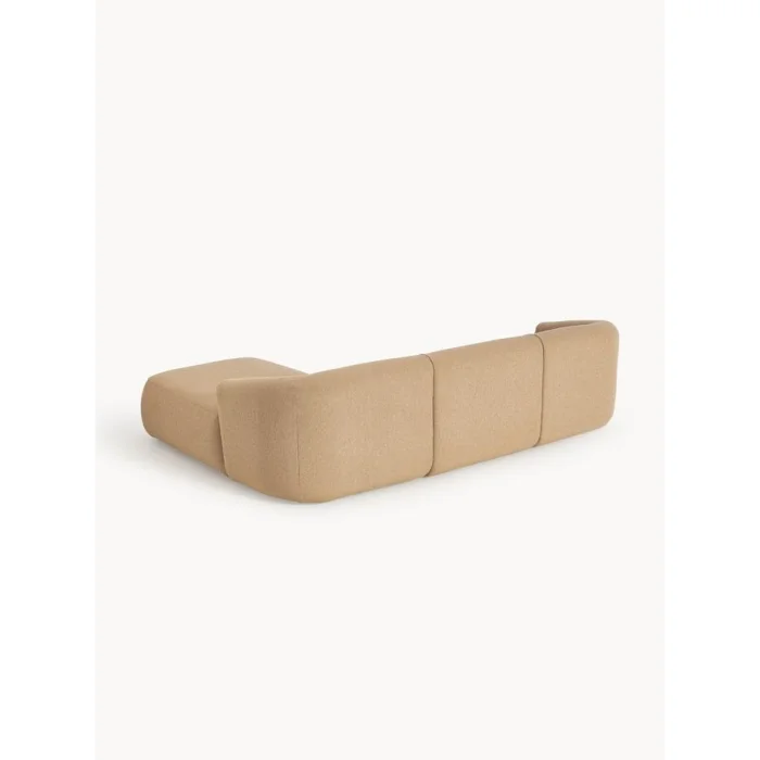 Leg height is 2.5 cm, and the maximum weight capacity per module is 150 kg. Material Fabric content: 70% polyester, 30% cotton. The fabrics were tested with 35,000 friction cycles in the Martindale test to make them more durable and long-lasting. Bouclé is a material characterized by its irregular curved structure. The characteristic surface is formed by woven loops made of different threads, which give the fabric a unique structure. The loop structure has an insulating and fluffy effect at the same time, which makes the fabric extra cute. The materials used in this product have been tested for harmful substances and are certified according to OEKO-TEX® SH015183646, TESTEX according to STANDARD 100. Upholstery: Foam padding + down sponge padding. Density: 35 DNS soft Frame: Baked hornbeam wood and MDF Feet: Plastic This product is made from wood from FSC-certified® sustainable sources. Tips The product is delivered fully assembled and can be used immediately after unpacking. The seat and back cushions are of medium firmness and at the same time offer a comfortable seating comfort. Upholstery filler is characterized by high elasticity, which allows the cushions to retain their shape. Light dirt can be easily removed with a damp cloth. Commercially available textile cleaning agents can be used for stubborn stains. Since we cannot provide a guarantee for cleaning agents, we have the following tip for you: Always test cleaning agents in an inconspicuous area! In this way, you can protect the fabric against possible wear. We recommend impregnating the fabric to ensure its longevity.