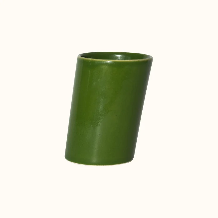 The design of the cups is inspired by a glass that is about to topple over. This innovative approach ensures that each of the cups is tilted at the same angle; In this way, sipping your drinks becomes both a fun and practical experience.