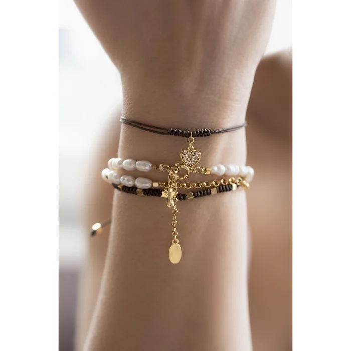 The size of the rope bracelet, designed using 24K micron gold-plated spacers on brass, can be adjusted between 14-22 cm thanks to its sliding lock.