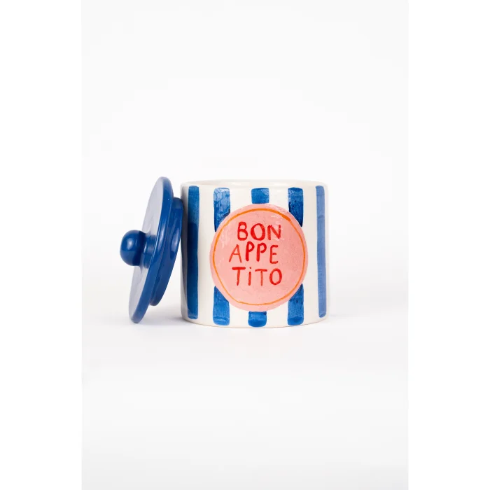 Thanks to its lidded structure, it allows you to safely store many of your belongings, from spices to tea, from sugar to small kitchen utensils. Due to its handmade nature, this jar has a unique texture in every frame and brush stroke, making it a decoration object beyond ordinary storage containers.