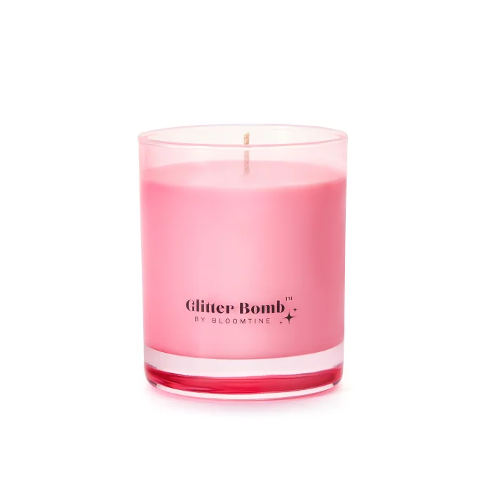 Introducing The 'Glitter Bomb™' Gift Candle In Our Opulent Pink Glass Jar and Vibrant Pink Wax. The Most Irresistible Entrancing Candle for Sparkle Lovers Originally Developed for Gifting, as The Perfect Gift Candle.