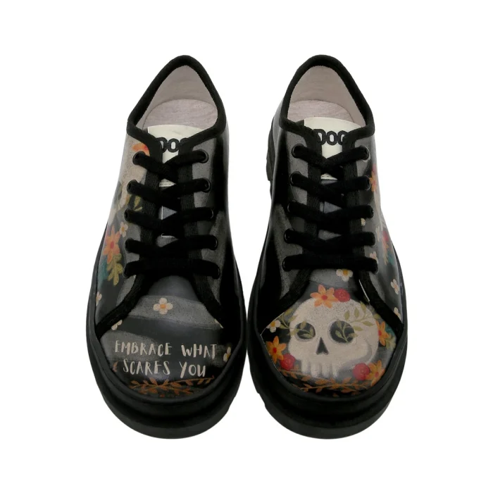 Product: Women Vegan Leather Black Sneakers - Embrace What Scares You Design