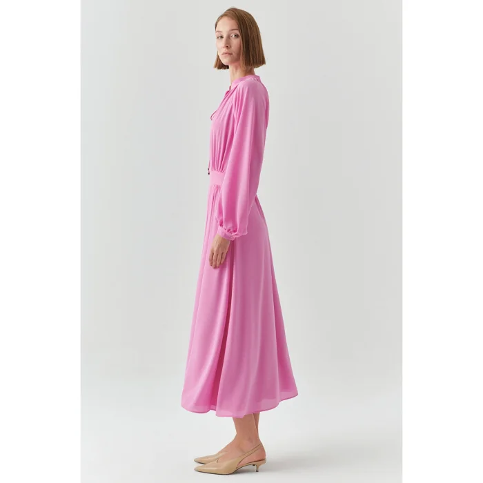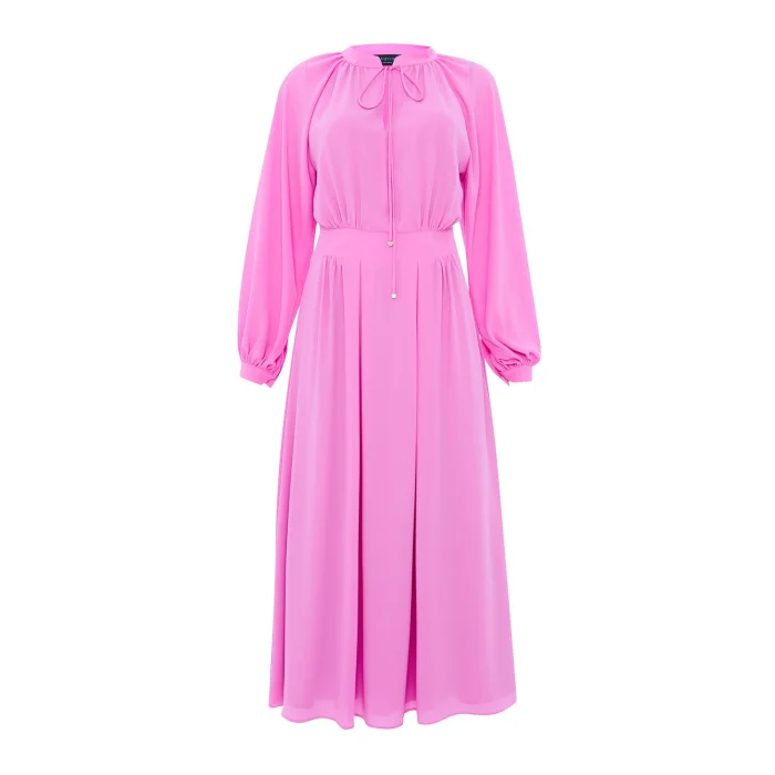 The dress model, which looks simple and stylish with its wide collars and cuff details on the wrists, is enlivened with the knot detail on the front. You can wear the dress, which offers a fresh and comfortable use thanks to its 100% viscose fabric, with a stylish trench coat or a long jacket model and wear it with pleasure in many areas, from the office to special events.