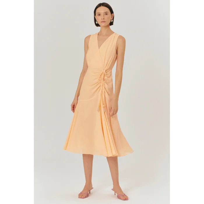 Product: V-neck Sleeveless Regular Midi Length Dress With Gathered Detail