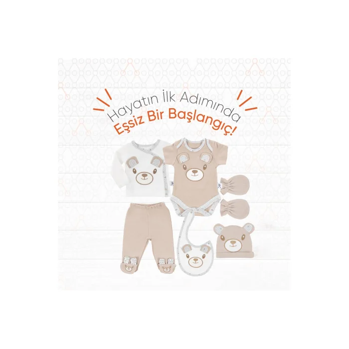 Product Description:Gezenbebe Hero Baby Hospital Outlet Set 6 Pieces: The Perfect Start for the First Big Day in Your Baby's Life! Prepare your newborn for the first important day in his life – the day he leaves the hospital. This special set from Gezenbebe is specially designed to offer your baby both comfort and style. With its gezenbebe quality and iconic patterns, it makes your little hero feel special from the beginning. Set Contents:EMBROIDERED HAT: Soft, breathable and embroidered hat with unique Gezenbebe heroes that will keep your baby's head warm. EMBROIDERED APRON: An embroidered apron inspired by the four heroes of Gezenbebe, offering a stylish solution for small accident moments. EMBROIDERED ZIBIN: A delicate staple decorated with iconic Gezenbebe patterns that will keep your baby clean and dry. BOOTIES: Comfortable pants with integrated booties that keep tiny feet warm. GLOVES: Soft gloves so your baby doesn't scratch himself. EMBROIDERED SHORT SLEEVE BODYSUIT: Breathable and soft short sleeve bodysuit that gently hugs your baby's skin, enriched with embroidery details from our four heroes. Standout Features:GEZENBEBE SIGNATURE:This set offers more than just a Hospital Exit Set; It is a fashion statement of Gezenbebe with its special patterns and detailed embroidery. FULL PROTECTION: Each piece in this set has been carefully selected to ensure that your baby is protected from head to toe. UNIQUE DESIGN OF GEZENBEBE: Elephant, Koala, Teddy Bear and Rabbit; The four beloved heroes of Gezenbebe bring your baby together with a unique elegance with this set.ULTIMATE COMFORT: Made of 100% breathable cotton fabric, this set offers your baby the highest comfort. UNISEX ELEGANCE: With its fashionable patterns, your baby feels ready in every sense. EASY TO USE: Nickel-free snap buttons offer quick and convenient use. GREAT GIFT: An ideal gift for new parents or your own baby. Technical Details:Size Options: 0-3 months, 3-6 months, 6-9 monthsColor Options: Bunny, Elephant, Koala, Teddy (Organic). Review the size chart before completing the order. With the Gezenbebe Hero Baby Hospital Exit Set, your baby is ready to meet the world in a stylish and comfortable way. Every moment is precious, and with Gezenbebe, these first moments are even more special.