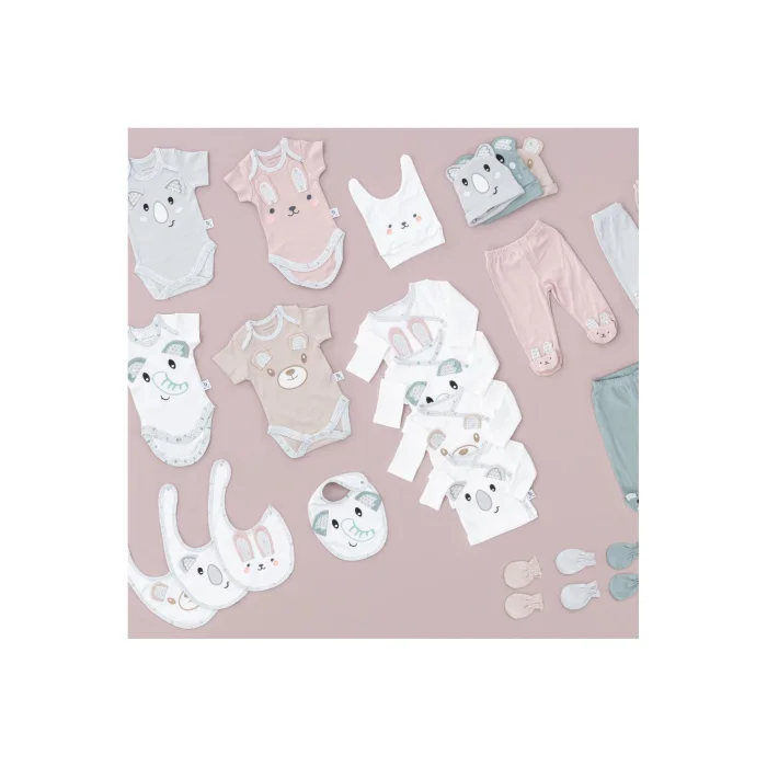 Product Description:Gezenbebe Hero Baby Hospital Outlet Set 6 Pieces: The Perfect Start for the First Big Day in Your Baby's Life! Prepare your newborn for the first important day in his life – the day he leaves the hospital. This special set from Gezenbebe is specially designed to offer your baby both comfort and style. With its gezenbebe quality and iconic patterns, it makes your little hero feel special from the beginning. Set Contents:EMBROIDERED HAT: Soft, breathable and embroidered hat with unique Gezenbebe heroes that will keep your baby's head warm. EMBROIDERED APRON: An embroidered apron inspired by the four heroes of Gezenbebe, offering a stylish solution for small accident moments. EMBROIDERED ZIBIN: A delicate staple decorated with iconic Gezenbebe patterns that will keep your baby clean and dry. BOOTIES: Comfortable pants with integrated booties that keep tiny feet warm. GLOVES: Soft gloves so your baby doesn't scratch himself. EMBROIDERED SHORT SLEEVE BODYSUIT: Breathable and soft short sleeve bodysuit that gently hugs your baby's skin, enriched with embroidery details from our four heroes. Standout Features:GEZENBEBE SIGNATURE:This set offers more than just a Hospital Exit Set; It is a fashion statement of Gezenbebe with its special patterns and detailed embroidery. FULL PROTECTION: Each piece in this set has been carefully selected to ensure that your baby is protected from head to toe. UNIQUE DESIGN OF GEZENBEBE: Elephant, Koala, Teddy Bear and Rabbit; The four beloved heroes of Gezenbebe bring your baby together with a unique elegance with this set.ULTIMATE COMFORT: Made of 100% breathable cotton fabric, this set offers your baby the highest comfort. UNISEX ELEGANCE: With its fashionable patterns, your baby feels ready in every sense. EASY TO USE: Nickel-free snap buttons offer quick and convenient use. GREAT GIFT: An ideal gift for new parents or your own baby. Technical Details:Size Options: 0-3 months, 3-6 months, 6-9 monthsColor Options: Bunny, Elephant, Koala, Teddy (Organic). Review the size chart before completing the order. With the Gezenbebe Hero Baby Hospital Exit Set, your baby is ready to meet the world in a stylish and comfortable way. Every moment is precious, and with Gezenbebe, these first moments are even more special.