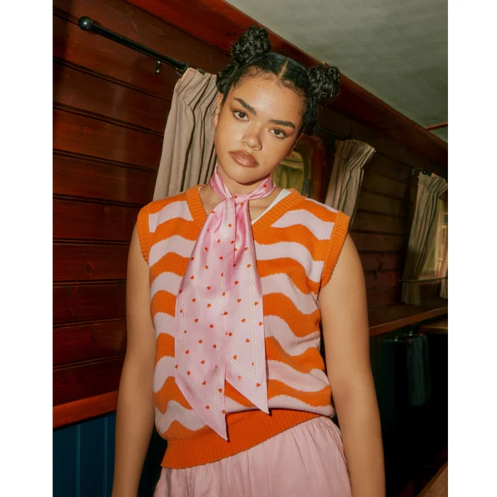 Product: Tiny Hearts Silk Neck Scarf Long Pink