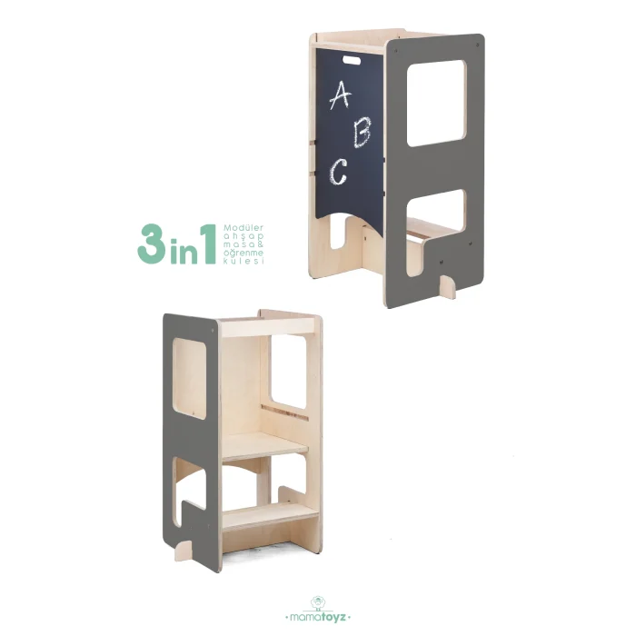 Product: Flip | 3 In 1 Learning Tower & Black Board & Learning Table Gray Color