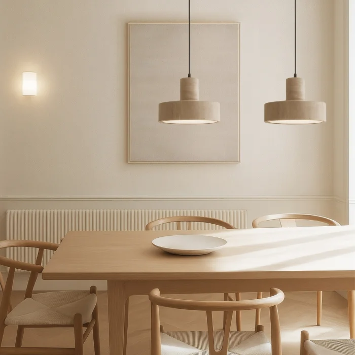 Crafted with the design expertise of Studio Noga and the production quality of Pah Studio, the Travertino Luna Pendant Lamp combines the natural elegance of travertine with a pure, minimalist form to offer a warm and refined lighting element. Ideal for focal points such as dining tables or bedside areas, it provides both functional and ambient illumination. Whether hung individually or in a cluster, it easily adapts to various interior design settings.