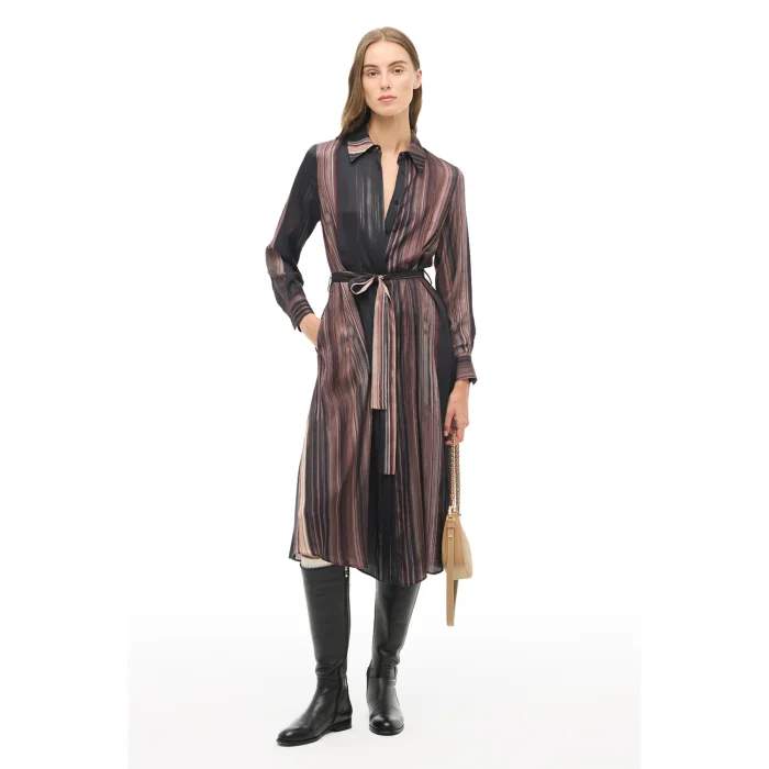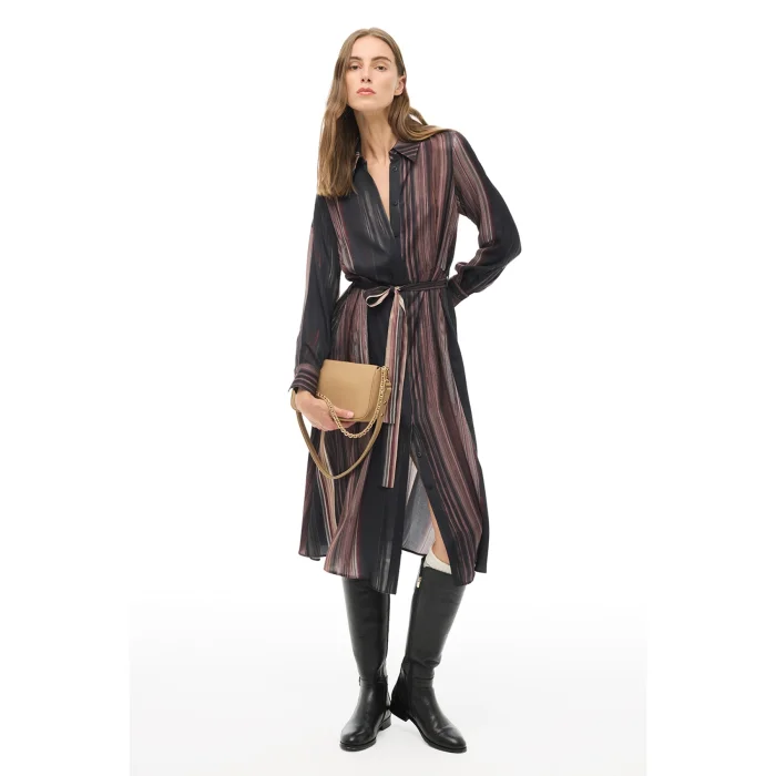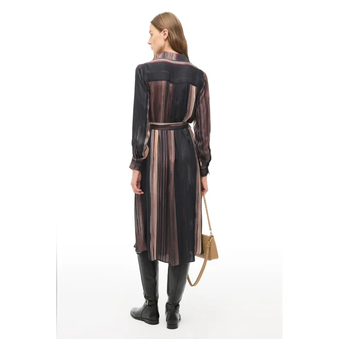 Product Details : 52% Flush 48% The dress, which stands out with its viscose texture, attracts attention with its shirt collar design and cut.; The Multicolor tone offers timeless elegance with its striped appearance; The button closure detail provides ease of use, while the long sleeve form increases comfort.; Pattern : Regular Fit Sleeve : False Sleeve Collar : Shirt Collar Sleeve : Long Sleeve Model Length : Midi Length Woven-Knitted : WOVEN Gender : Women's Place of Production : Turkey Pattern : Striped Blend : 57% Rayon 52% Confluence 48% Viscose Closure Type : Button Season : 2025 - 2026 AUTUMN WINTER Age Group: WomenSleeve Length: Long Sleeve