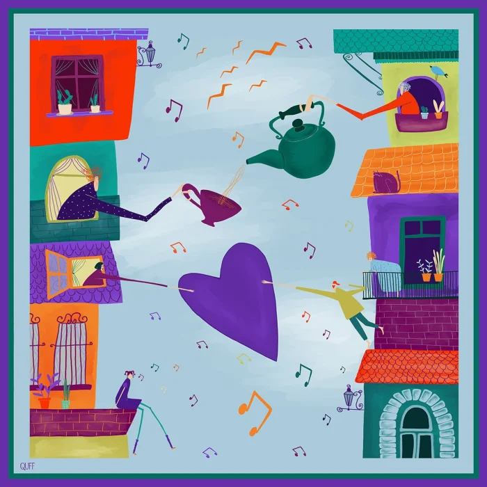Color : Blue Fabric : 100% Vegan Silk Size: 90x90cm Summer is fresh silk. Its edges are sewn by hand. The patterns are hand-drawn and digitally colored. When worn, there is no falling or slipping on the front. Shipped in special boxes. Only dry cleaning is recommended. Limited edition.