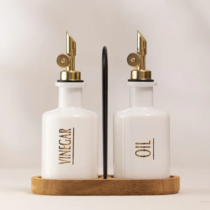 Product: Marbella Bamboo Stand 2-piece Oil-vinegar Bottle Set White 200 Cc