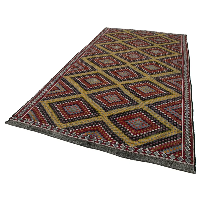 Vintage Cecim kilims are on 185 cm width and 353 cm length and the pile height is 5mm, the approximate weight of the rug is 14 kg. It’s % 100 handknotted wool and goat hair rug. It’s made from the natural dye.
