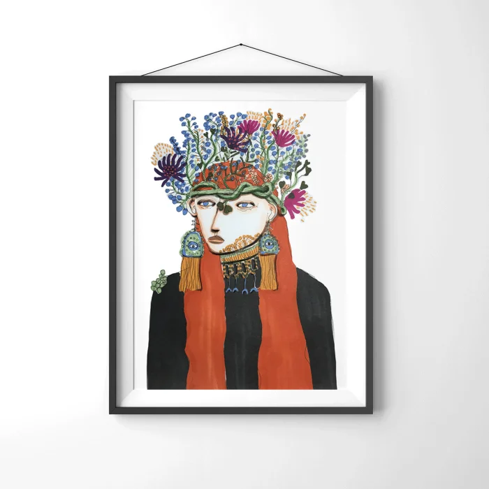 Drawings made with markers, dry and watercolors, then printed in giclée quality on 210g matte Hahnemühle enhanced paper. This technique; Art printing can capture 98% of the original colors, and these colors are preserved for about 200 years in a healthy way. *Will be sent by roll without frame. *Print size is 60x90. *Frame allowances are given extra. *Not measured.