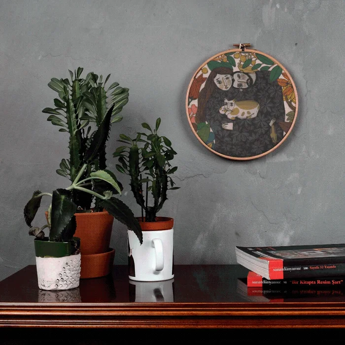 It is produced by stretching fabric on the pulley. Any drawing of Serkan Akyol can be applied.