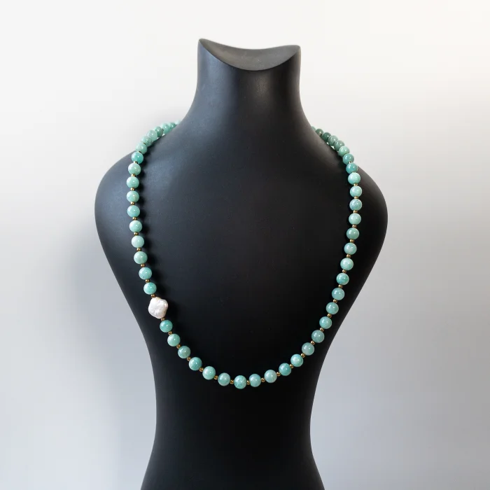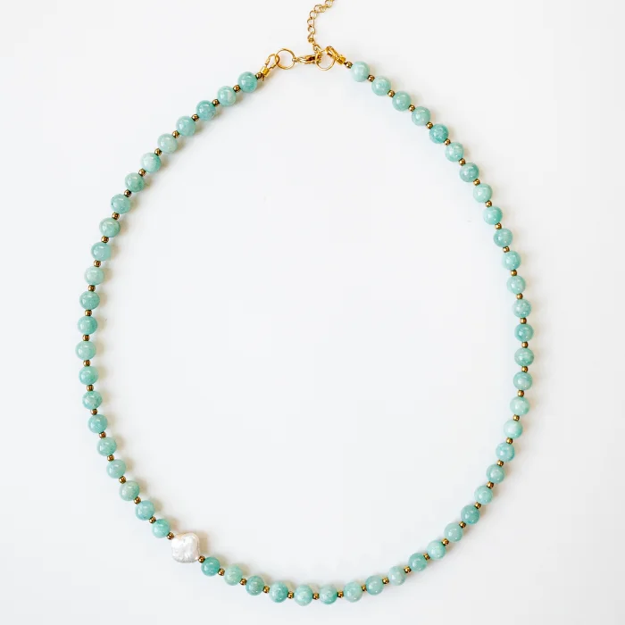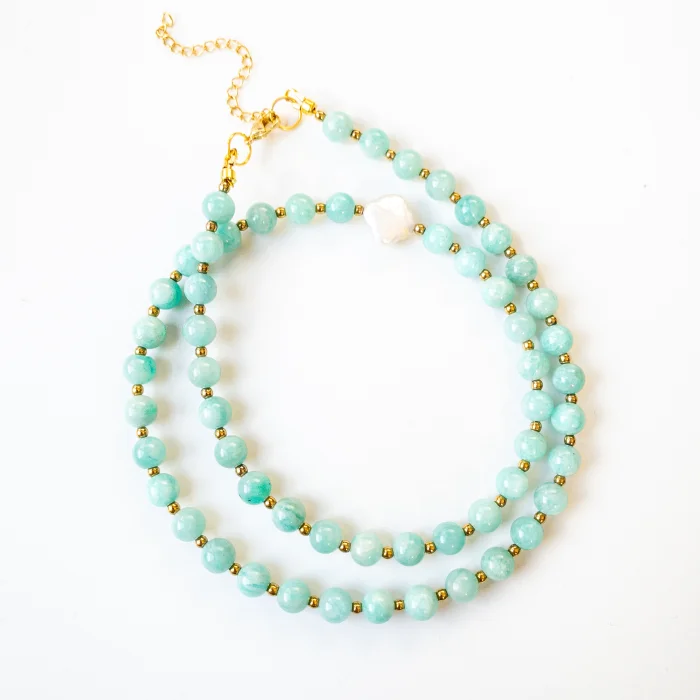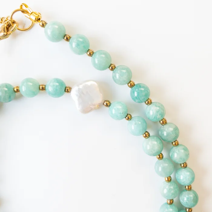 Nareva - Amazonite, Hematite & Pearl Gemstone Necklace