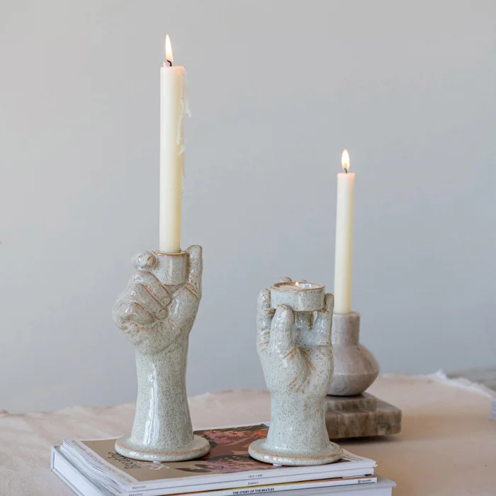 Interesting figures are spices that complement a room decor. The Porcelain Candle Holder can be added to a shelf, placed above a fireplace, or placed next to other objects. Sold Single.