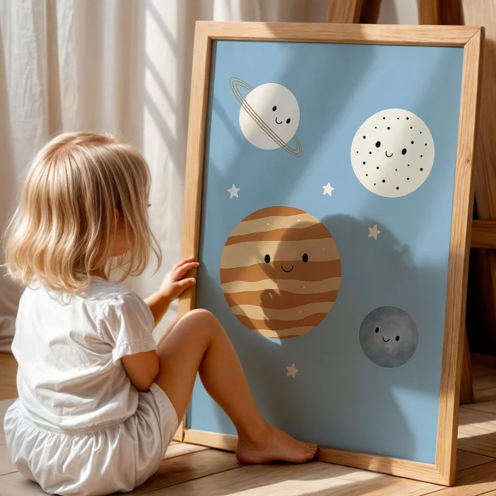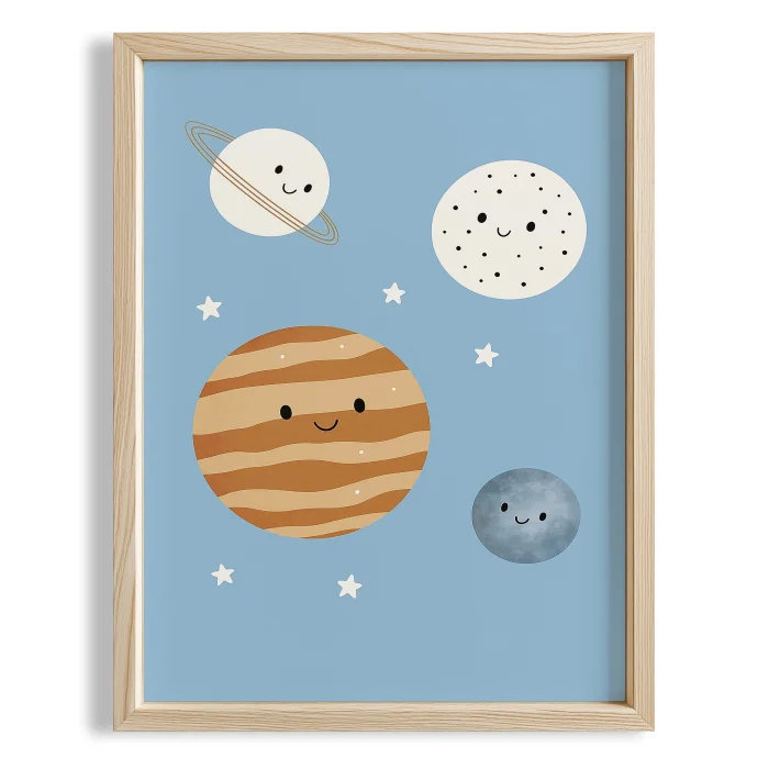 Product: Cute Planets With Blue Background Kids' Room Wooden Wall Art I