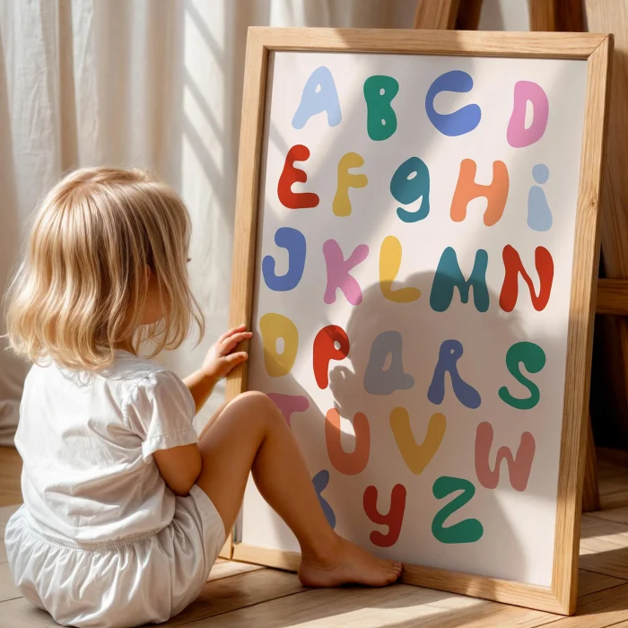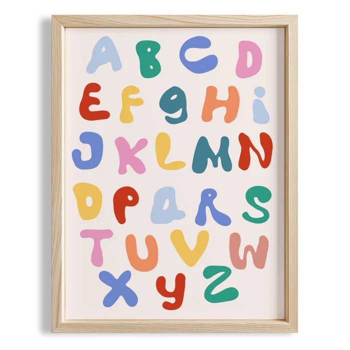 Eğlenceli İngilizce Alphabet - Girls' Room Decor Wooden Framed Wall Art