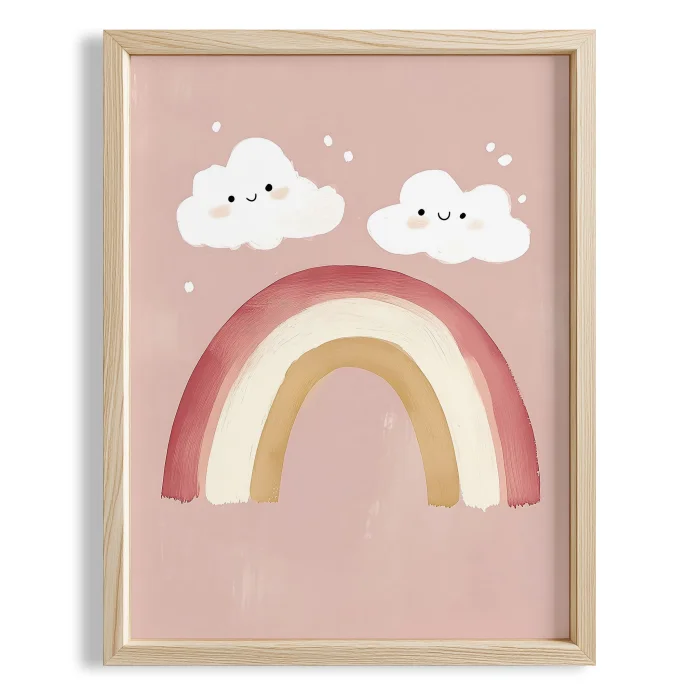 Product: With Pink Background Rainbow Ve Bulutlar Girls' Room Wooden Wall Art