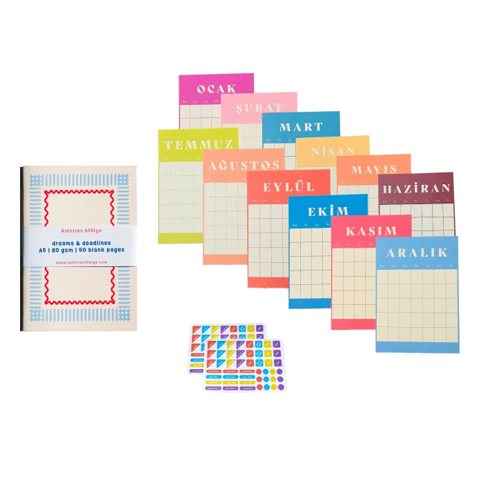 Thanks to its undated structure, you can start using the calendar at any time of the year and shape your planning order according to your own needs. With its simple and modern design, this set is a practical helper for those who want to both create order in their workspace and follow their plans in a more enjoyable way.