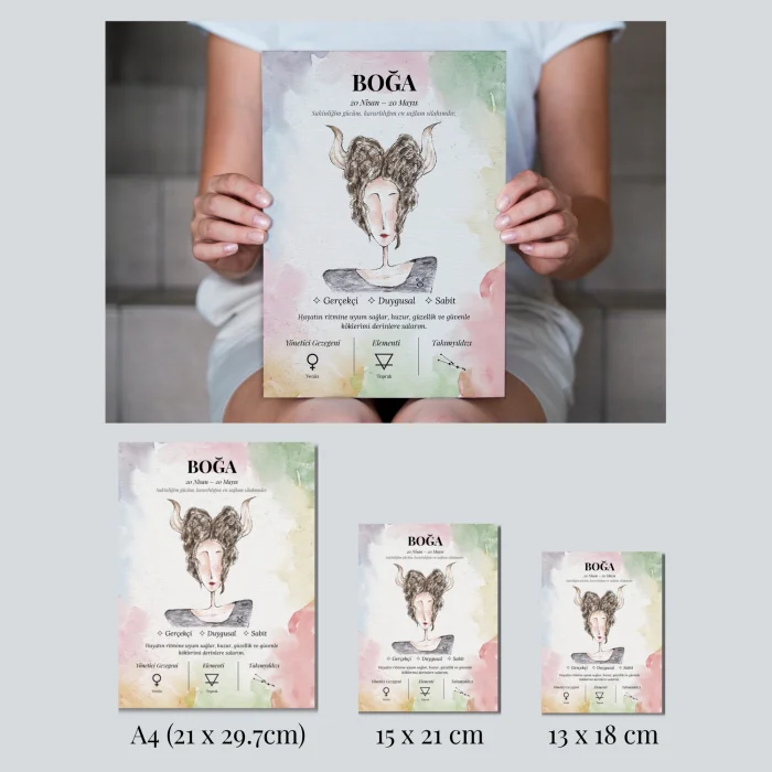 The hand-painted watercolor illustration is scanned in high resolution and printed on textured archival-quality fine art paper. Carefully prepared for those seeking long-lasting, high-quality prints. This Taurus Poster is both a meaningful and decorative choice for astrology enthusiasts.