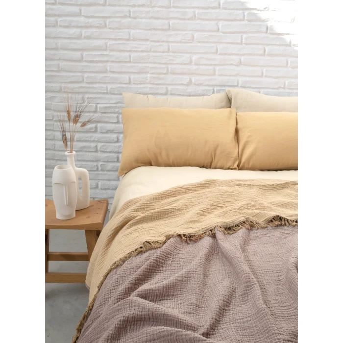 Cocoon Bedspread is an elegant piece that will add naturalness and peace to your home. Its 100% cotton texture surrounds you with its softness, offering a comfortable sleep experience every night. It complements your bedroom with a feeling that comes from the roots and a peace that comes from within. It adapts to different beds with its wide range of size options and offers aesthetics and functionality together. Both stylish and comfortable, this cover will add warmth and a natural touch to your room.