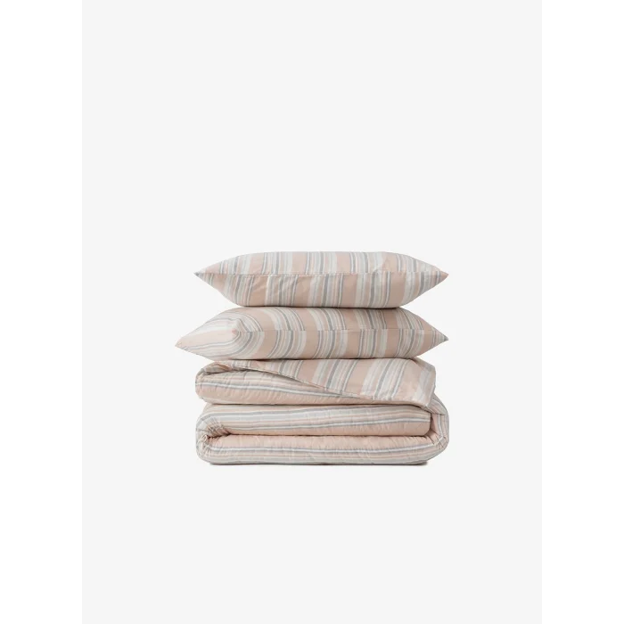 Striped Smooth Percale Duvet Cover offers elegant elegance and superior comfort together with the Smooth fabric developed by Barine. With its vibrant texture and soft touch, it provides excellent comfort throughout the night, while its durable construction stays fresh even with long-term use. Its elegant striped design adds a modern and sophisticated atmosphere to your bedroom. Combining aesthetics and functionality, this duvet cover is designed so that you can spend every night more comfortably and takes your sleep experience to the next level. 100% cotton, pre-washed and Oeko-Tex certified.