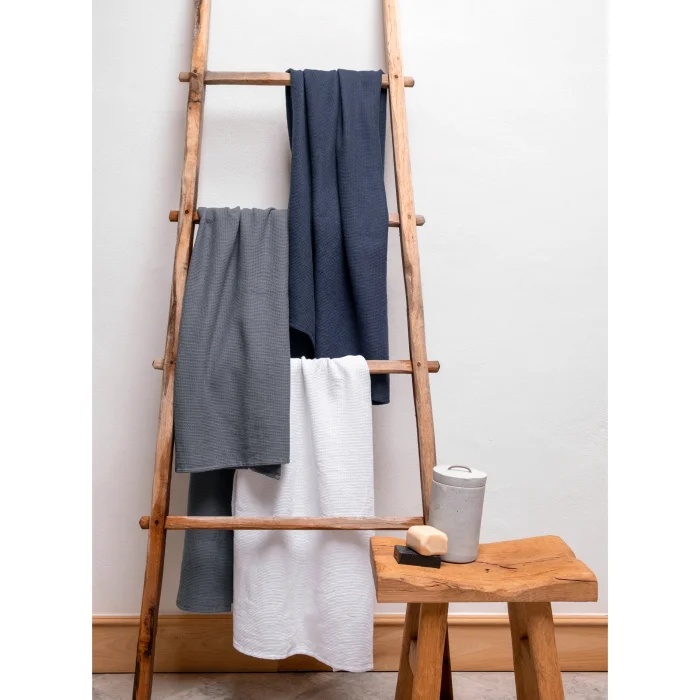 Waffle Indigo Towel adds elegance and practicality to your bathrooms with its popular honeycomb texture. Made of 100% cotton, this towel meets every need with different size options. It can be easily used as hand, head and bath towels. It makes your bathrooms enjoyable with its soft and high absorbency.