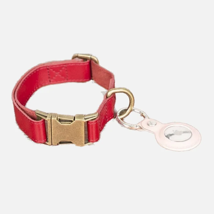 Product: Bloompaw Crimson Red Genuine Leather Pet Collar
