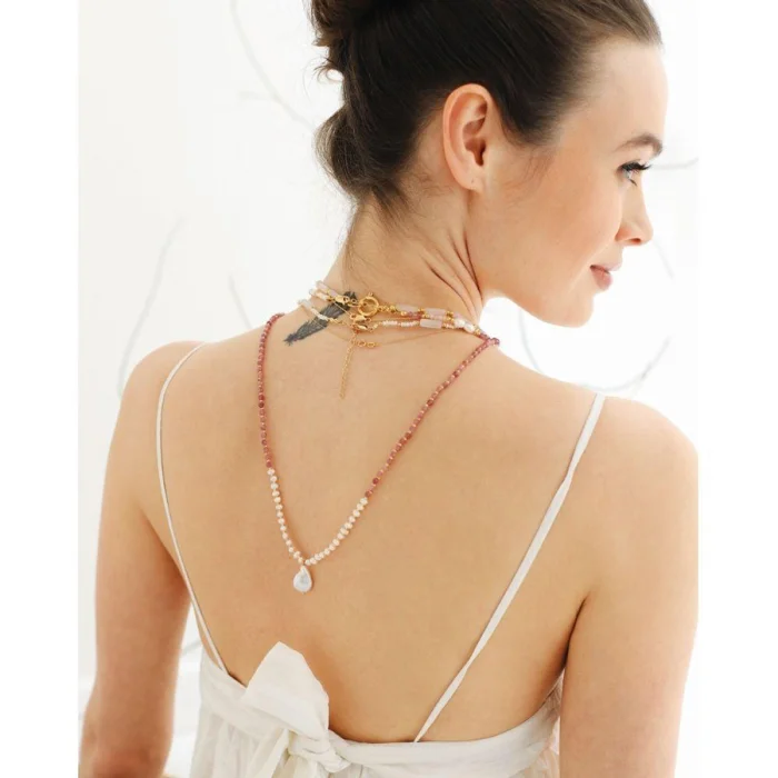 Care: We are using natural stones such as coral, jade, opal, rhodochrosite, tourmaline, sodalite, amethyst, apatite, agate, fluorite, pearls, colourful beads, gold-plated and silver pieces in our necklaces, bracelets, anklets, earrings and eyeglass chains. That's why contact of accessories with water, perfume, cream and alcohol should be avoided.