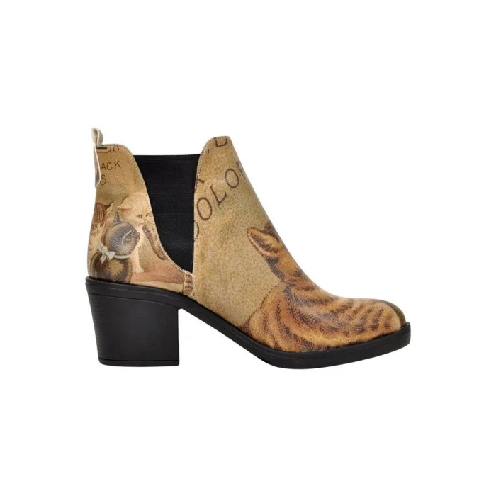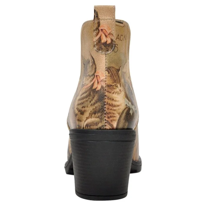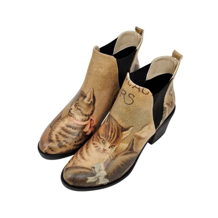 Product: Women Vegan Leather Beige Ankle Boots - Cats Do Plan Design