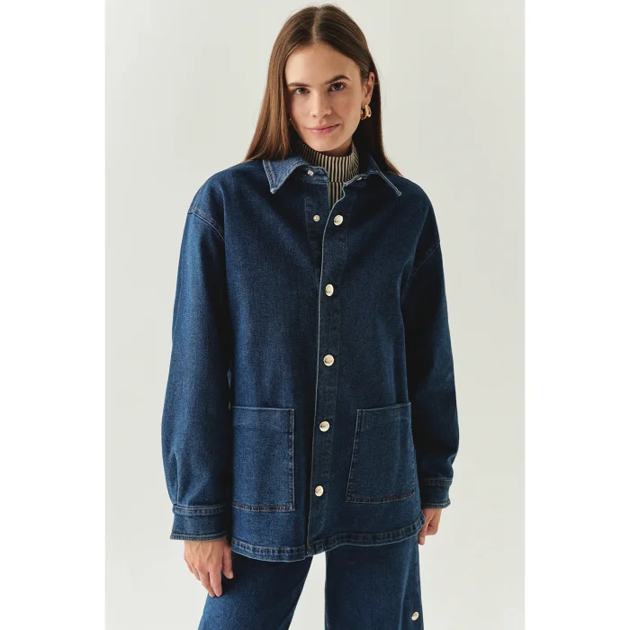 Product: Denim Indigo Jacket With Regular Pockets And Metal Button Detail