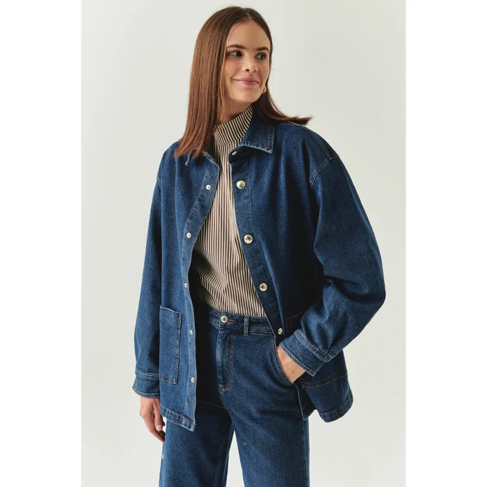 Product: Denim Indigo Jacket With Regular Pockets And Metal Button Detail