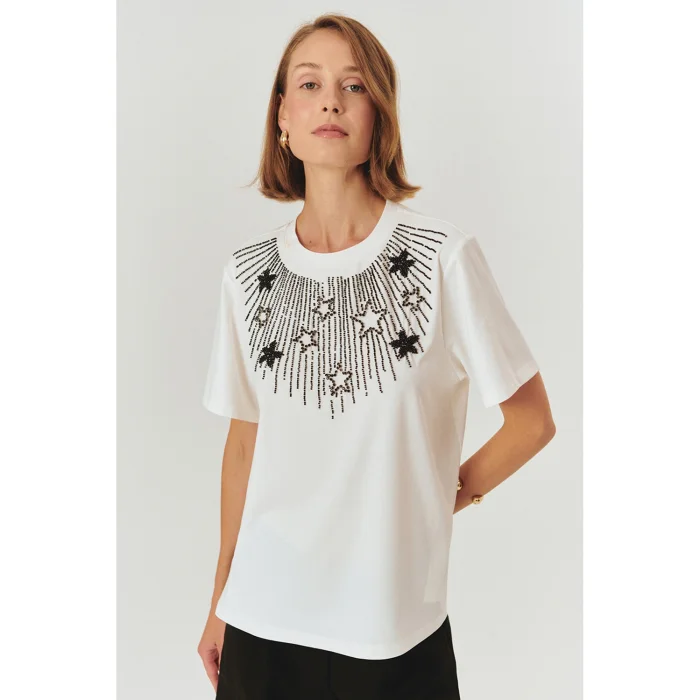 Product: Star Embroidered Crew Neck Regular Knitted T-shirt