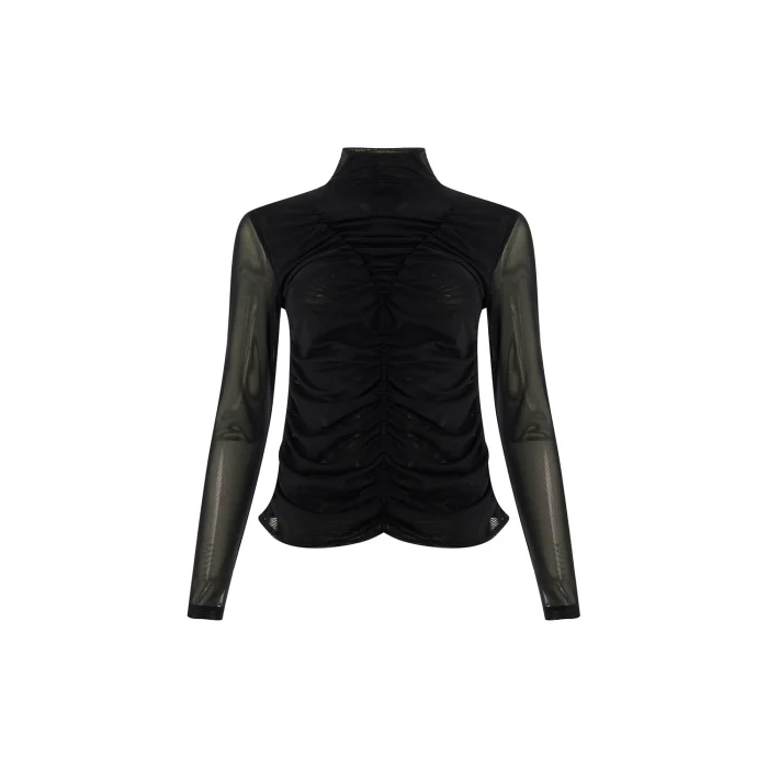 Product: Turtleneck Draped Long Sleeve Slim Fit Tulle Blouse