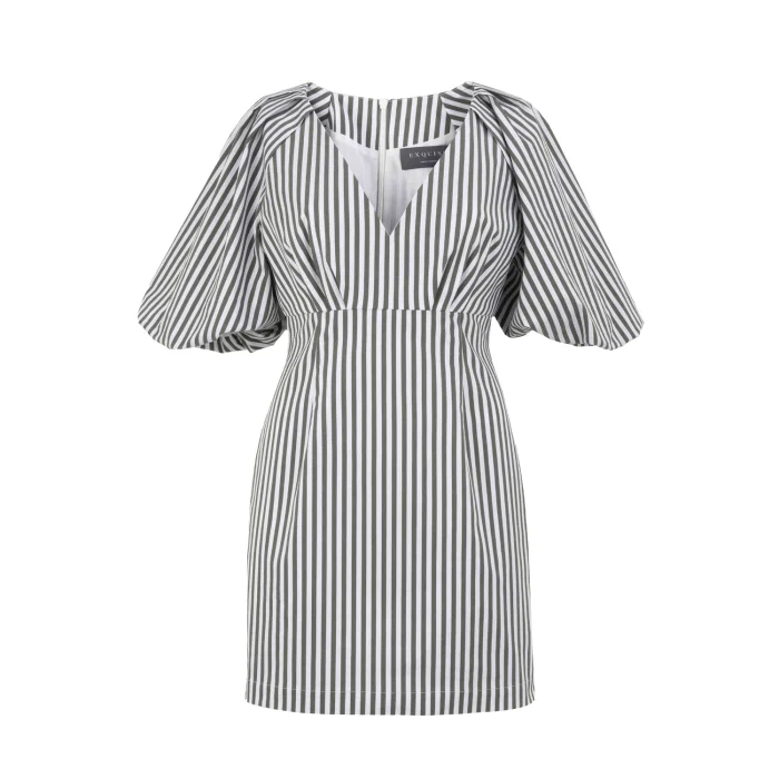 Product: V-neck Balloon Sleeve Striped Cotton Mini Dress