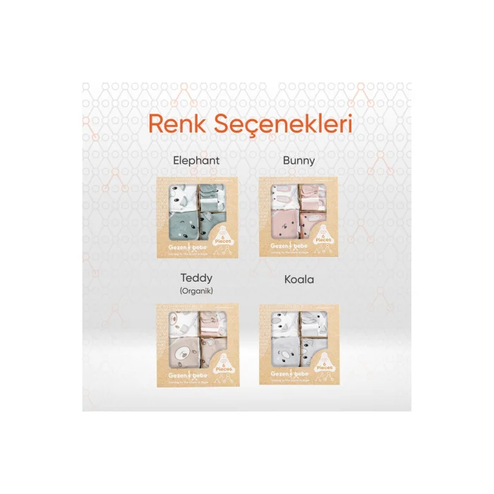 Product Description:Gezenbebe Hero Baby Hospital Outlet Set 6 Pieces: The Perfect Start for the First Big Day in Your Baby's Life! Prepare your newborn for the first important day in his life – the day he leaves the hospital. This special set from Gezenbebe is specially designed to offer your baby both comfort and style. With its gezenbebe quality and iconic patterns, it makes your little hero feel special from the beginning. Set Contents:EMBROIDERED HAT: Soft, breathable and embroidered hat with unique Gezenbebe heroes that will keep your baby's head warm. EMBROIDERED APRON: An embroidered apron inspired by the four heroes of Gezenbebe, offering a stylish solution for small accident moments. EMBROIDERED ZIBIN: A delicate staple decorated with iconic Gezenbebe patterns that will keep your baby clean and dry. BOOTIES: Comfortable pants with integrated booties that keep tiny feet warm. GLOVES: Soft gloves so your baby doesn't scratch himself. EMBROIDERED SHORT SLEEVE BODYSUIT: Breathable and soft short sleeve bodysuit that gently hugs your baby's skin, enriched with embroidery details from our four heroes. Standout Features:GEZENBEBE SIGNATURE:This set offers more than just a Hospital Exit Set; It is a fashion statement of Gezenbebe with its special patterns and detailed embroidery. FULL PROTECTION: Each piece in this set has been carefully selected to ensure that your baby is protected from head to toe. UNIQUE DESIGN OF GEZENBEBE: Elephant, Koala, Teddy Bear and Rabbit; The four beloved heroes of Gezenbebe bring your baby together with a unique elegance with this set.ULTIMATE COMFORT: Made of 100% breathable cotton fabric, this set offers your baby the highest comfort. UNISEX ELEGANCE: With its fashionable patterns, your baby feels ready in every sense. EASY TO USE: Nickel-free snap buttons offer quick and convenient use. GREAT GIFT: An ideal gift for new parents or your own baby. Technical Details:Size Options: 0-3 months, 3-6 months, 6-9 monthsColor Options: Bunny, Elephant, Koala, Teddy (Organic). Review the size chart before completing the order. With the Gezenbebe Hero Baby Hospital Exit Set, your baby is ready to meet the world in a stylish and comfortable way. Every moment is precious, and with Gezenbebe, these first moments are even more special.