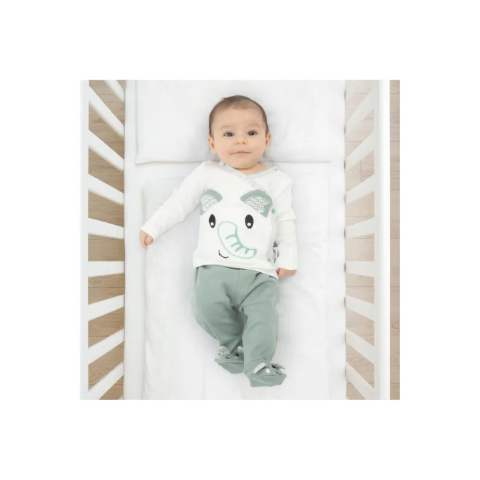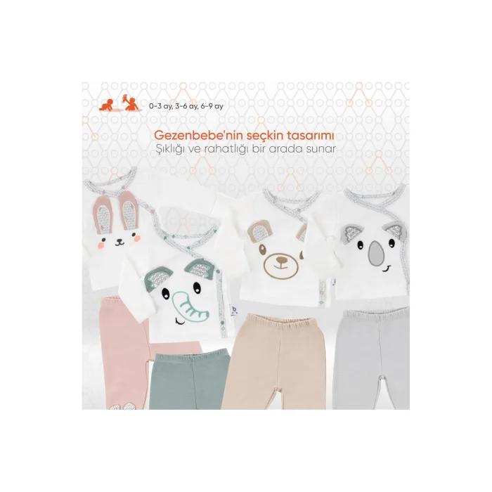 Product Description: Gezenbebe Hero Embroidered Booties & Booties for Babies Set: The Ideal Touch for Your Baby's Sensitive Skin with Gezenbebe's Original Heroes! If you're looking for the perfect touch for your baby, this is the place to be. Wrap your baby's delicate skin in the most special way with Gezenbebe's unique heroes, Elephant, Koala, Teddy Bear and Rabbit. Standout Features:GEZENBEBE'S UNIQUE DESIGN: This isn't just a baby body and pants set; It is a style statement of Gezenbebe with its exquisite patterns and exquisite embroidery. PREMIUM COTTON FABRIC: Made with 100% breathable cotton, this set offers the softest touch to your baby's skin.SIGNATURE PATTERN & HERO MASCOTS: Gezenbebe's unique design crowns your baby's comfort and elegance with the Elephant, Koala, Teddy Bear and Rabbit mascots. UNISEX STYLE: With its modern patterns, it is ideal for both baby boys and girls. DON'T LET THE LITTLE FEET GET COLD: Booties with mascot embroidery detail keep the tiny feet warm. NICKEL-free: The nickel-free snap design allows your baby to dress up and take off comfortably. ALWAYS FOR THE BETTER: We are constantly improving our products by taking into account customer feedback. Technical Details:Size Options: 0-3 months, 3-6 months, 6-9 months. Color Options: Bunny, Elephant, Koala, Teddy (Organic)Please carefully review the size and color options before ordering. Make every moment more special with this set designed for your baby's comfort and elegance with the quality of gezenbebe!
